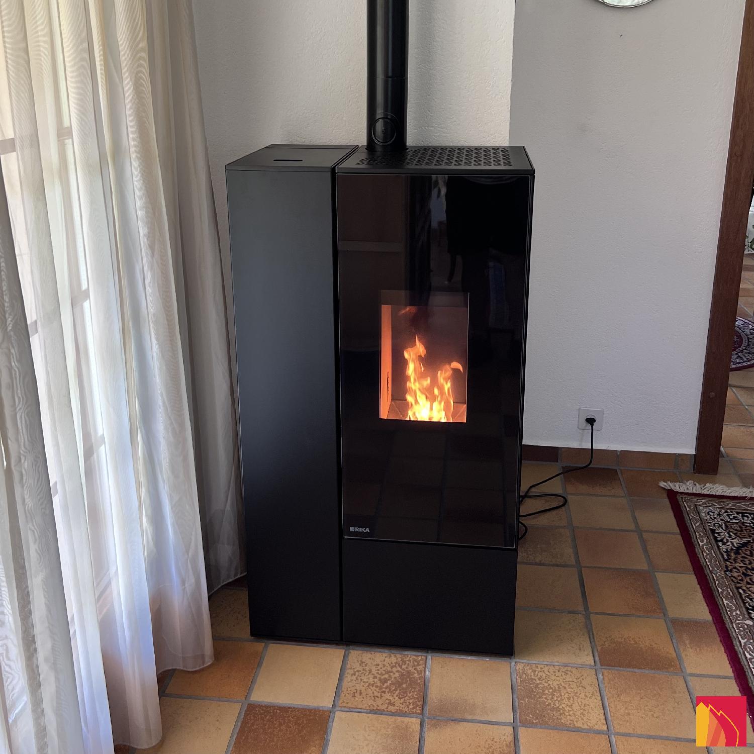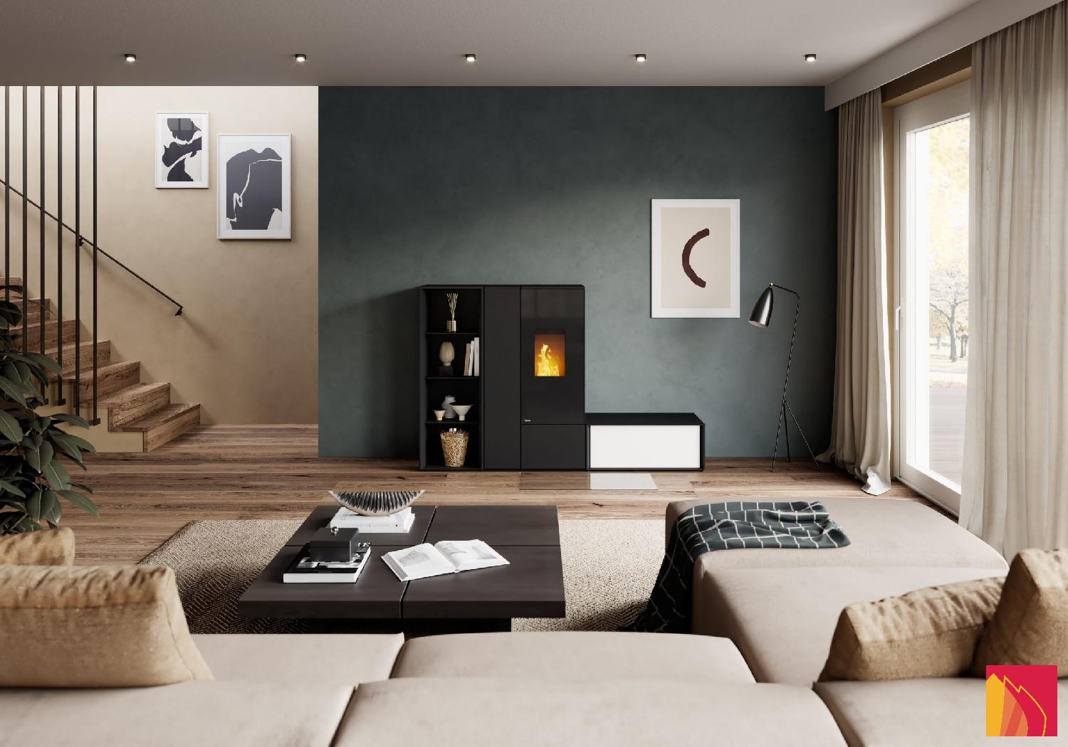 With the Connect pellet stove, the Austrian company Rika offers a modern heating device. The new generation pellet stove is available in two different sizes (22 and 38, corresponding to the capacity of the pellet tank) and can be adapted to suit any interior. Offering an optimal view of the fire, the Connect is available with its black steel fronts and its many optional modules (chests, benches, library modules, decorative door ...) for a perfect integration. Easy to live with and low noise, it is equipped with the latest technologies.
