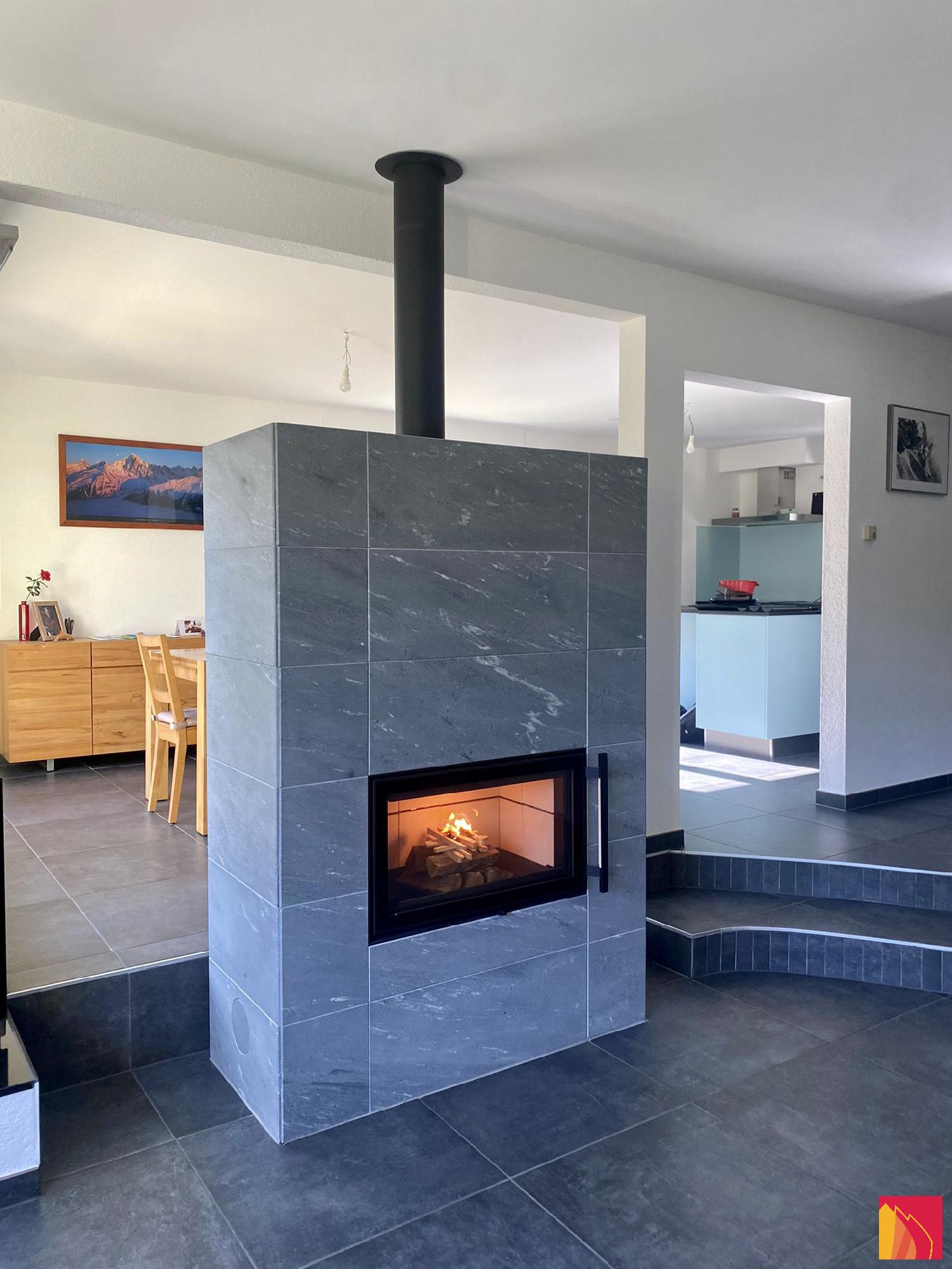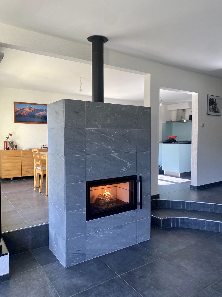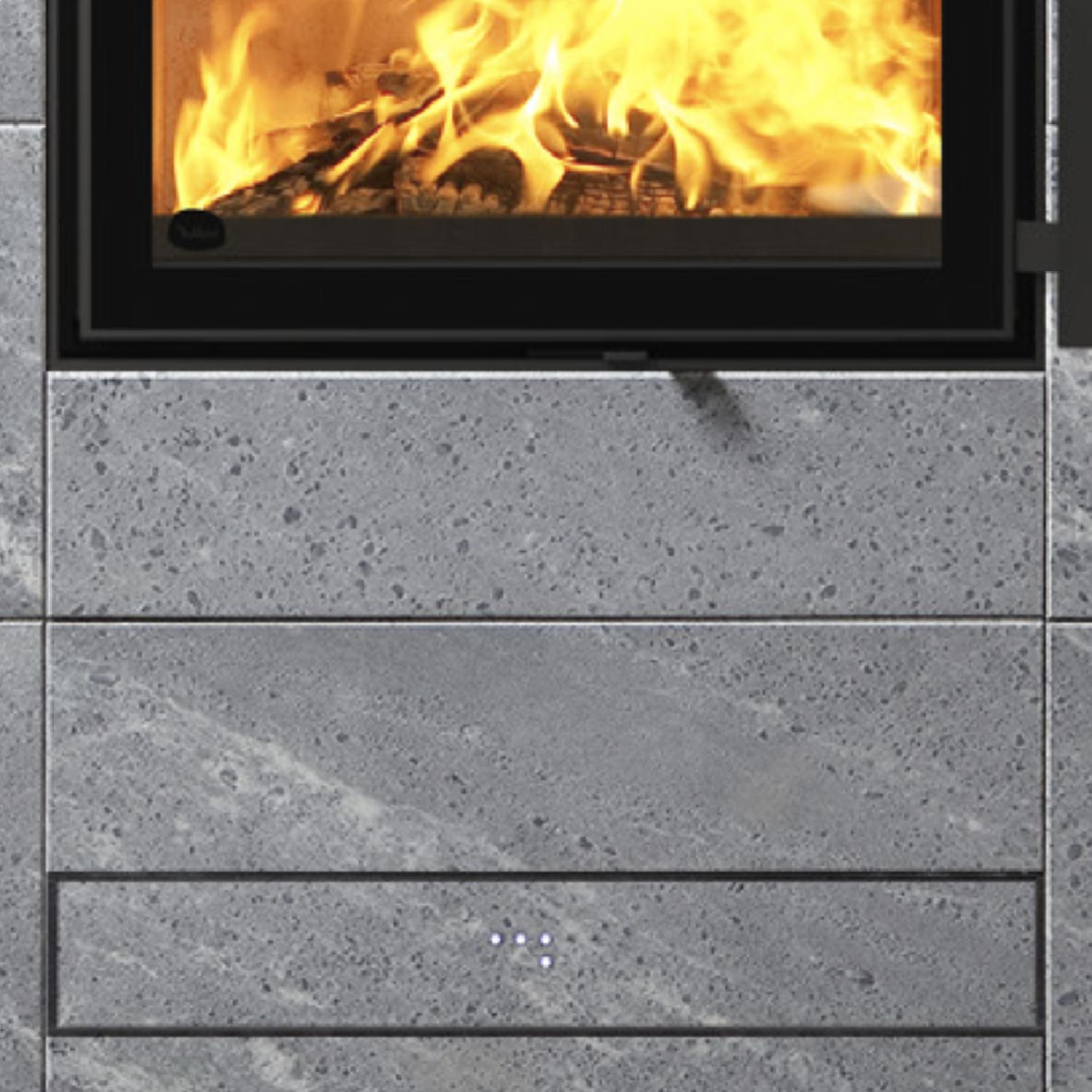 Saramo è un'elegante stufa in pietra ollare con una generosa porta più larga che alta. Questa porta è la più ampia del mercato e permette di ammirare il fuoco da lontano. Esiste anche una versione di questo modello con porte su due lati opposti. Il camino è adatto per la combustione sia di tronchi che di pellet. La tecnologia di combustione è stata ottimizzata in modo che sia i tronchi che i pellet producano una fiamma maestosa. Grazie alla griglia metallica in dotazione, è possibile utilizzare il caminetto anche per cucinare. Sono disponibili tre altezze standard : - La versione 15 (1m50) - La versione 18 (1m80) - La versione 21 (2m10) Tempo di rilascio del calore in percentuale della potenza massima (h) - 7,6 h (100%) - 23,7 h (50%) - 39,4 h (25%)