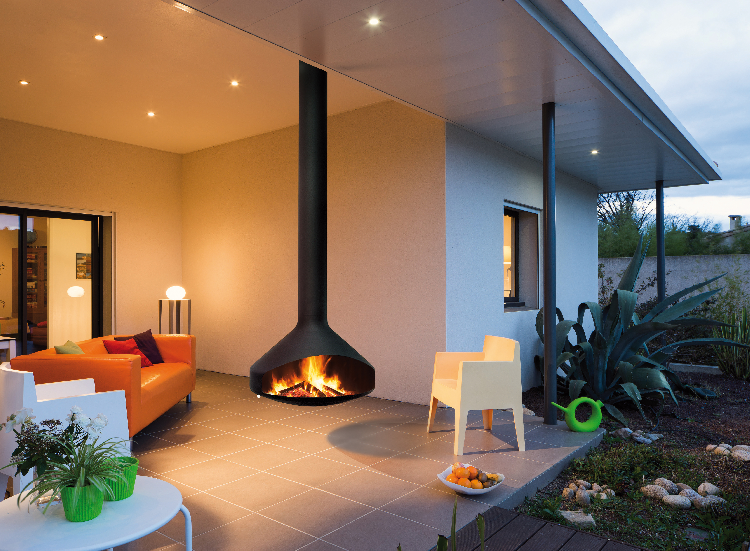 CHAMINÉ PARA USO EXTERIOR, COM LAREIRA SUSPENSA E GIRATÓRIA Para aqueles que querem redescobrir a candura da infância, a Ergofocus ao ar livre oferece uma fogueira rústica e maliciosa.