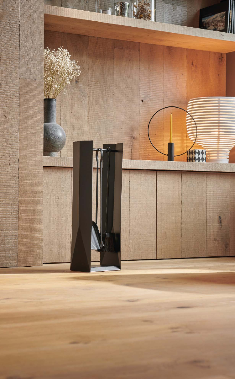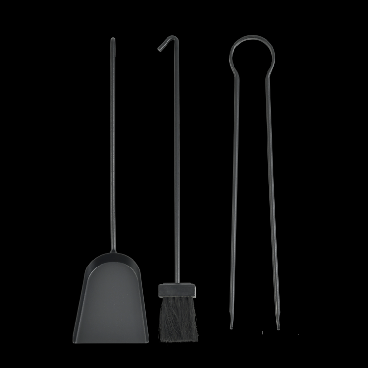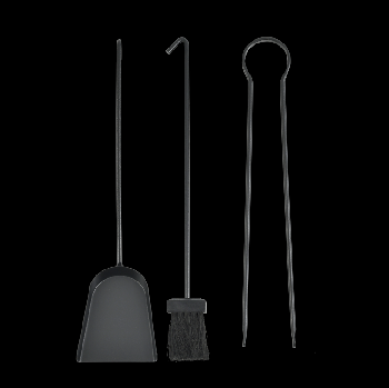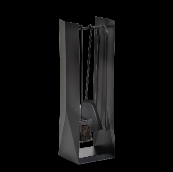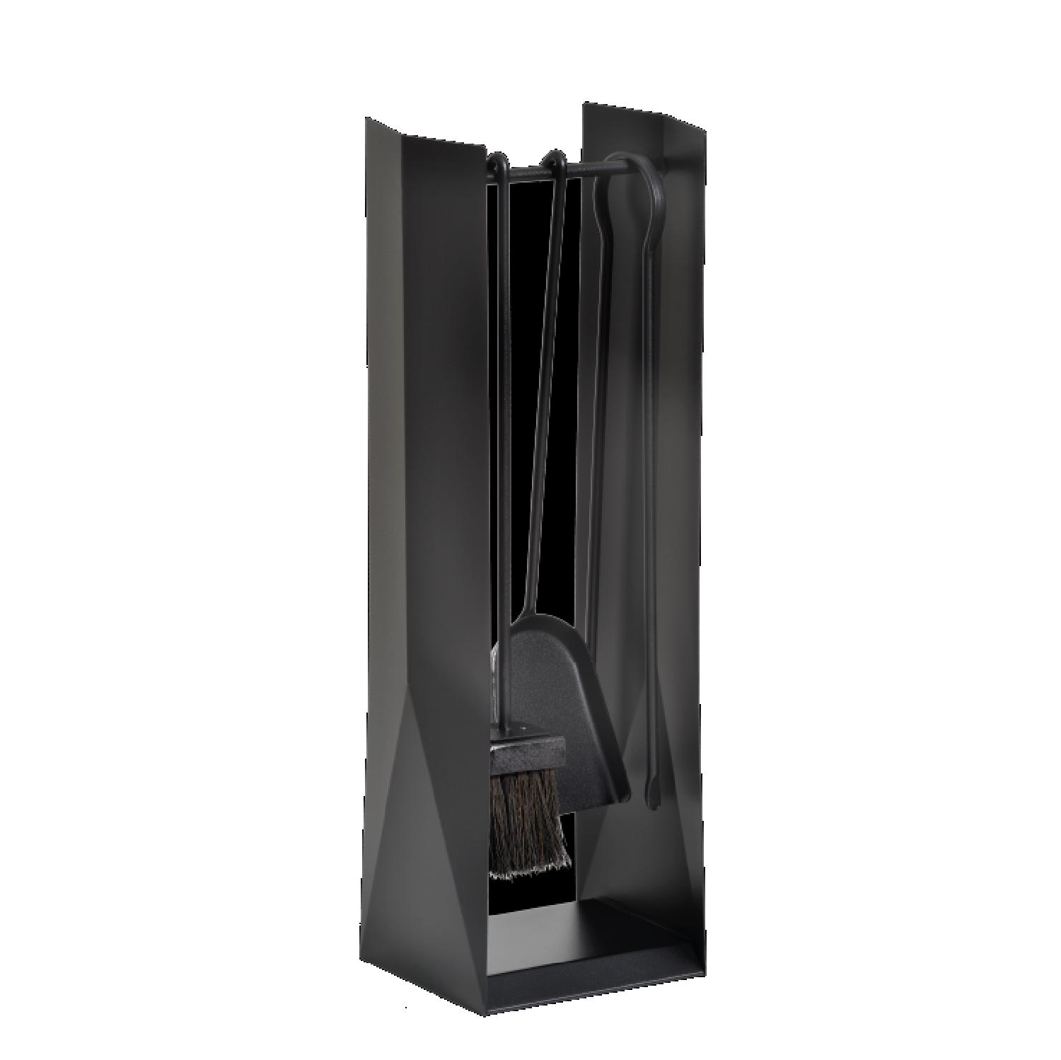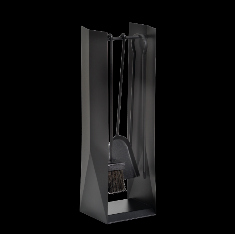 A arte tradicional japonesa de dobrar Origami inspirou as formas geométricas deste conjunto de manutenção para fogões a lenha e lareiras. Contém pinças, picareta, pá de lixo e vassoura.